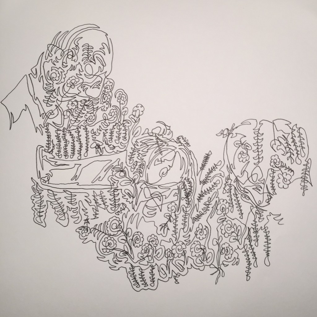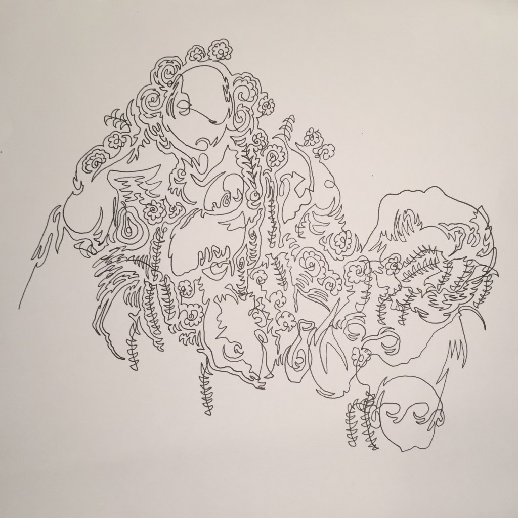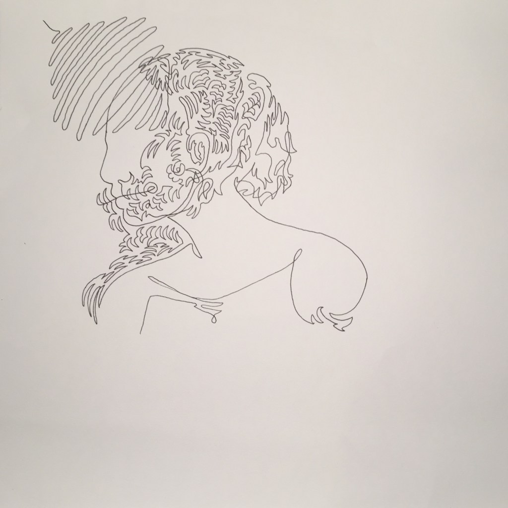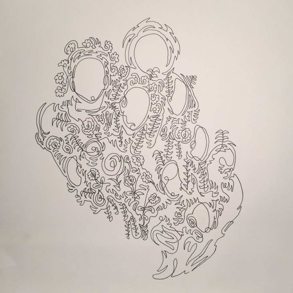 Note: Apologies for the image quality, I don’t have a good way to take pictures of physical art (which is one reason why most of the art on this blog is digital). I did this series for my final project in Drawing I during my second year of college. I wanted to depict the way an idea is translated from an initial point of inspiration to an art piece. Each piece is one continuous line.